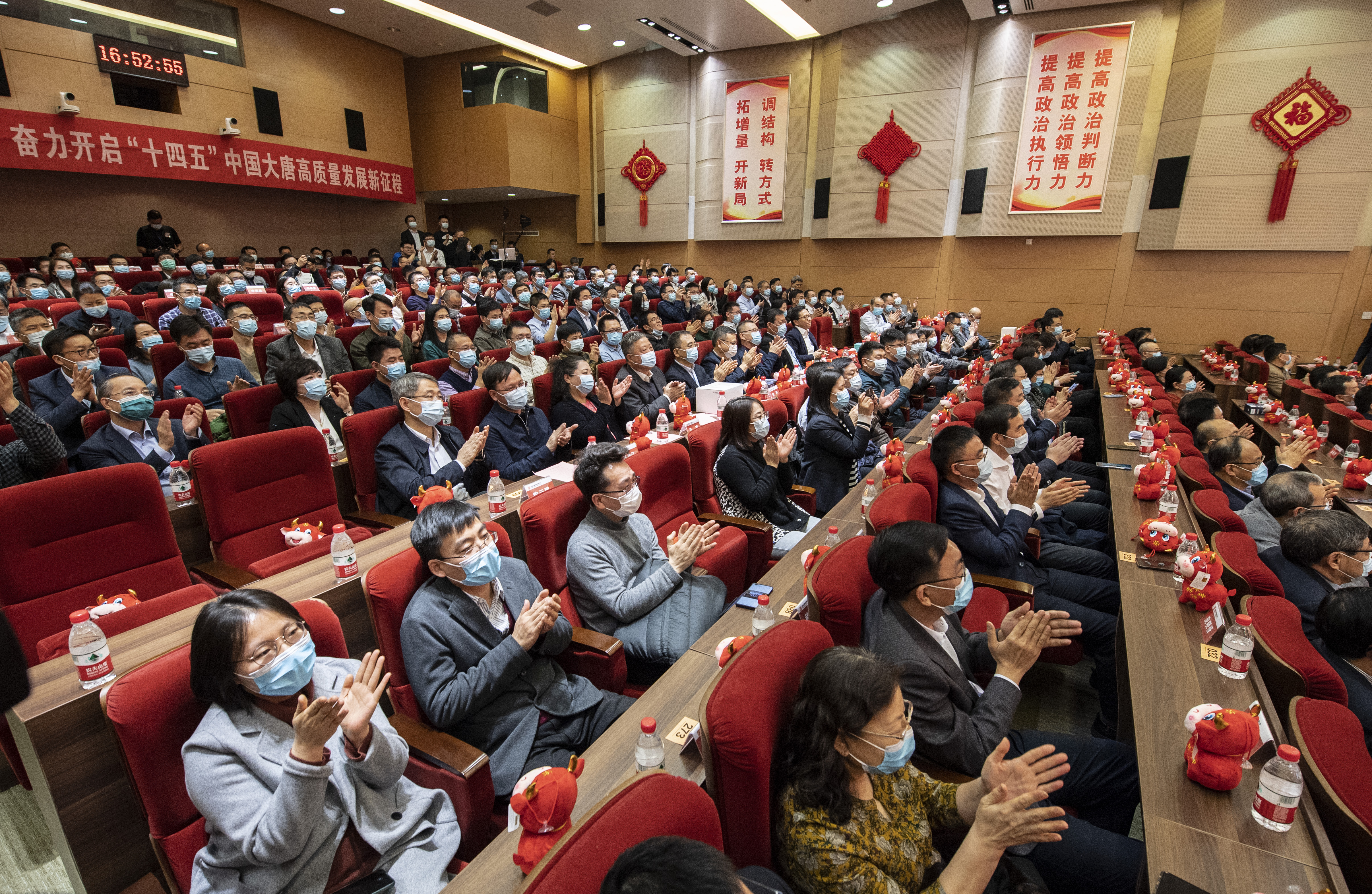 集团公司领导邹磊、时家林、刘广迎、王瑛、曲波、张传江、彭勇、陶云鹏与总部全体干部员工欢聚一堂,共迎新春佳节的到来。