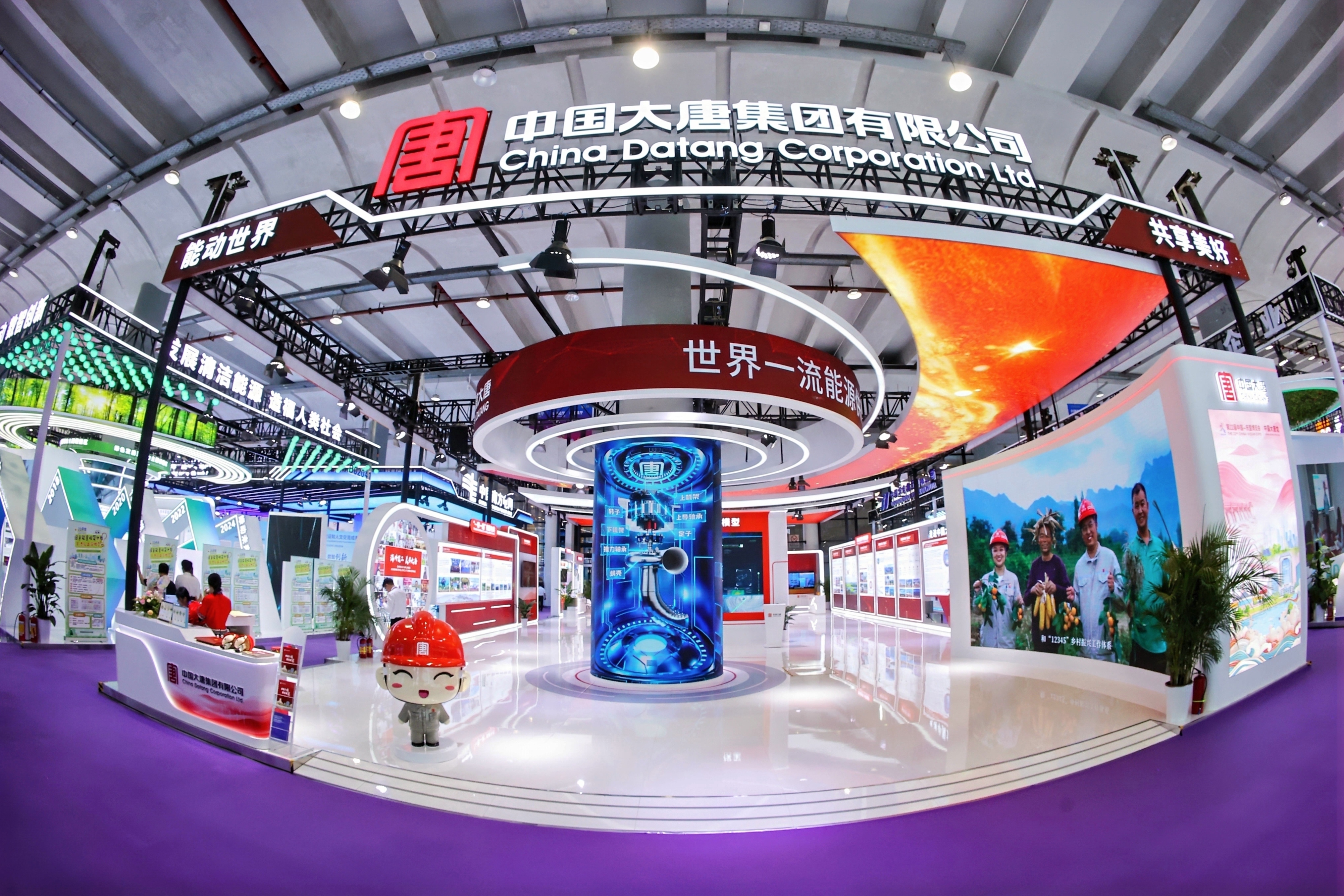 今年是p站视频 连续第22次参展,主题为“能动世界 共享美好”。步入以红水河为设计灵感的展厅,顶部空间布局呼应河流蜿蜒流淌的形态。展厅中央矗立着水轮机大轴,作为能量传递的核心部件,它以沉稳而有力的旋转,将水流的动能持续转化为电力,点亮万家灯火。